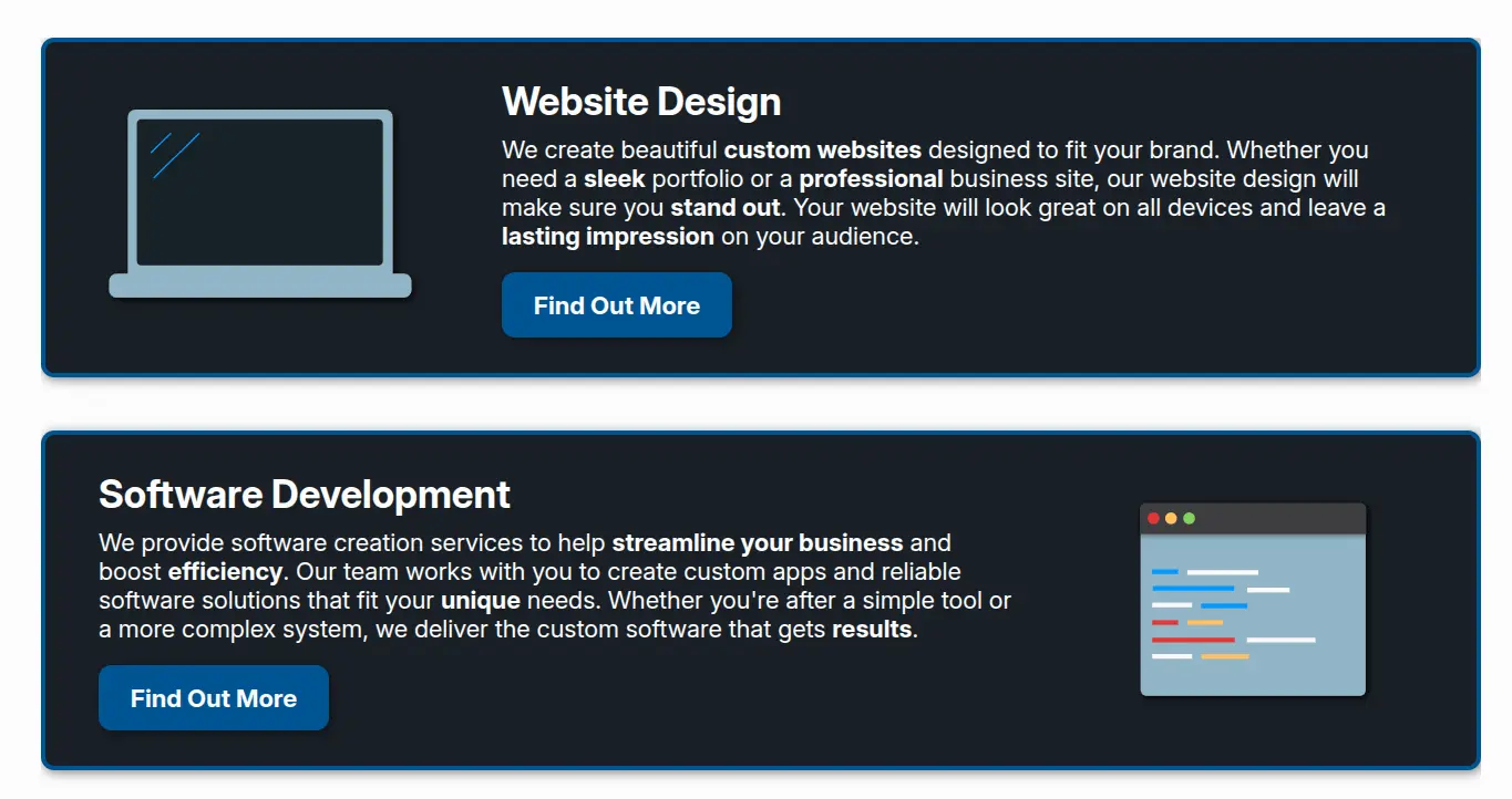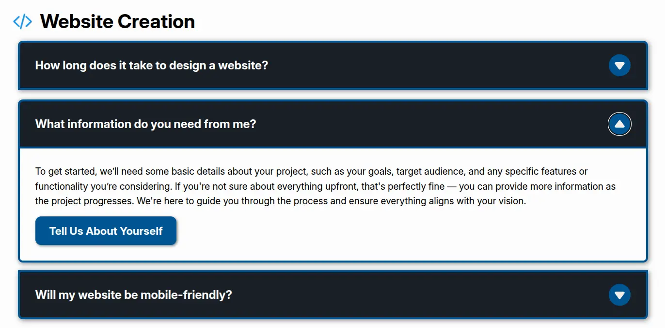 Our contact form adapts based on the service viewed, showing relevant FAQs directly beneath to save time and answer common questions upfront. There’s also a standalone, searchable FAQ page for those who want to dig deeper. Fully responsive across all devices, the site ensures a smooth experience whether you're browsing on desktop, tablet, or mobile.